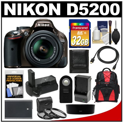 What do you think about Nikon D5200 Digital SLR Camera & 18-55mm G VR DX AF-S Zoom Lens (Bronze) with 32GB Card + Backpack + Grip + Battery & Charger + Remote + HDMI Cable + Filters Kit?